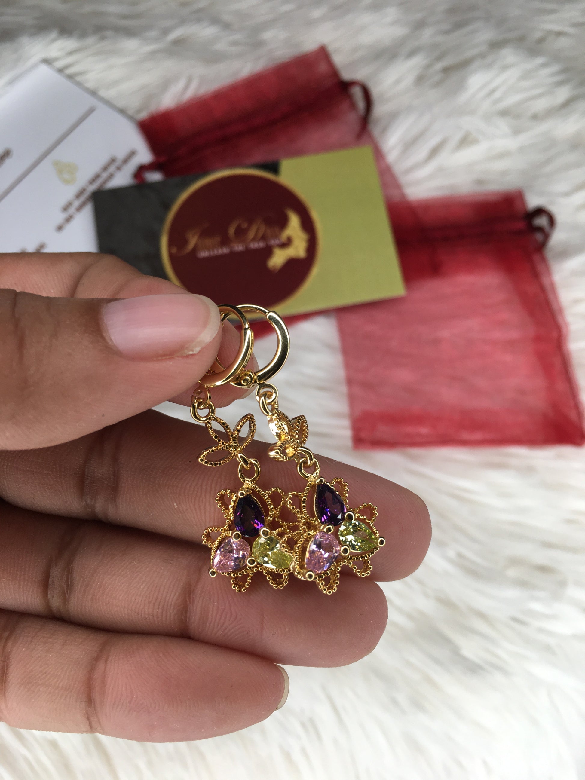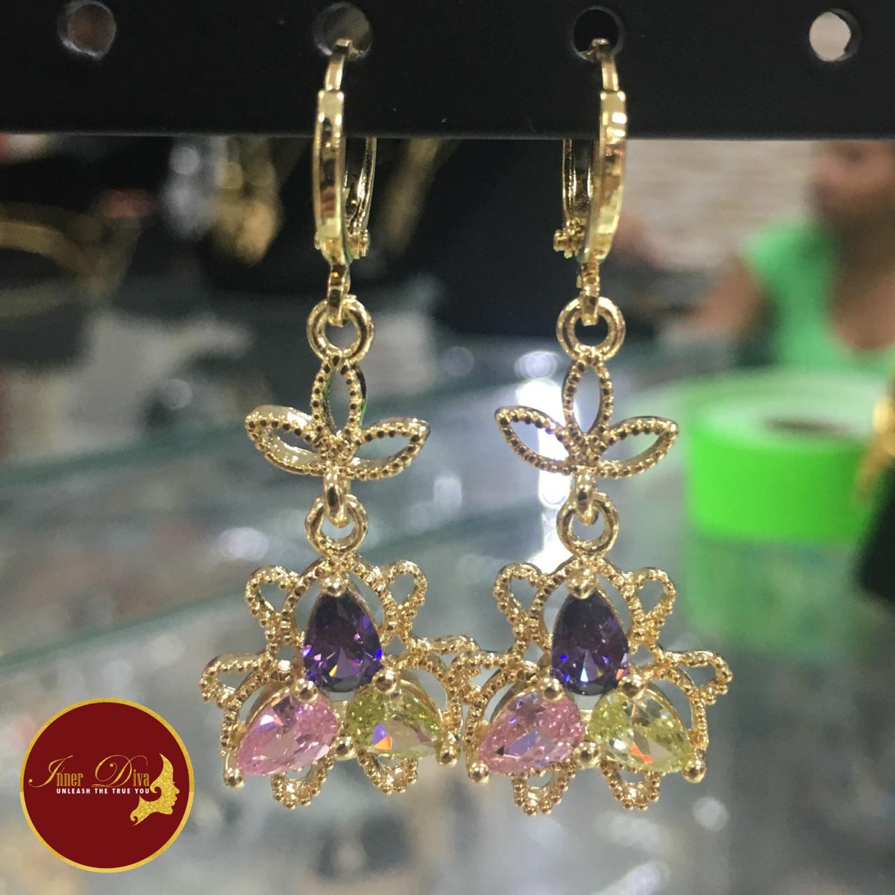 24k gold plated multicolored hanging earring