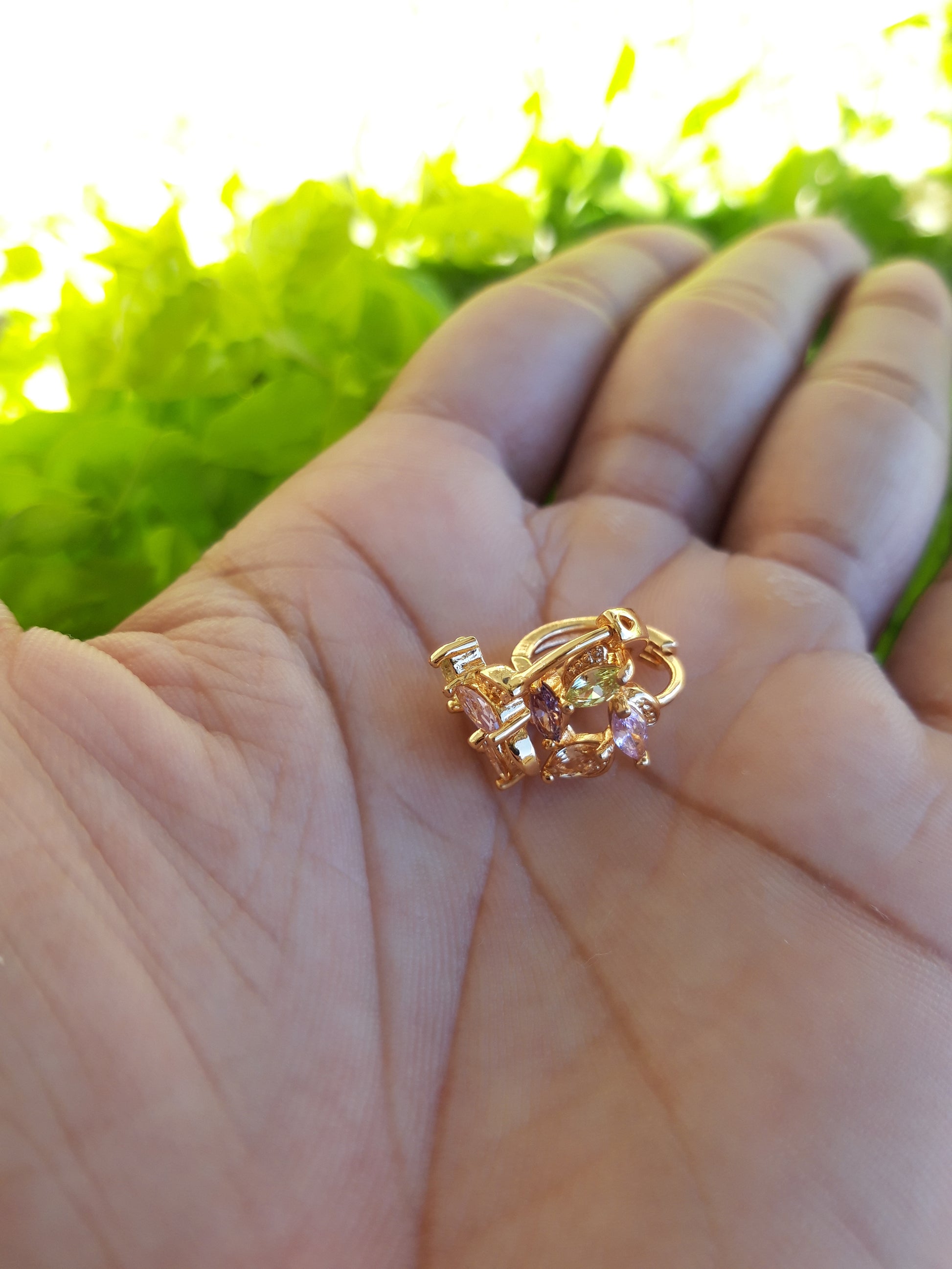 18k gold plated huggie earring with cubic zirconium stones