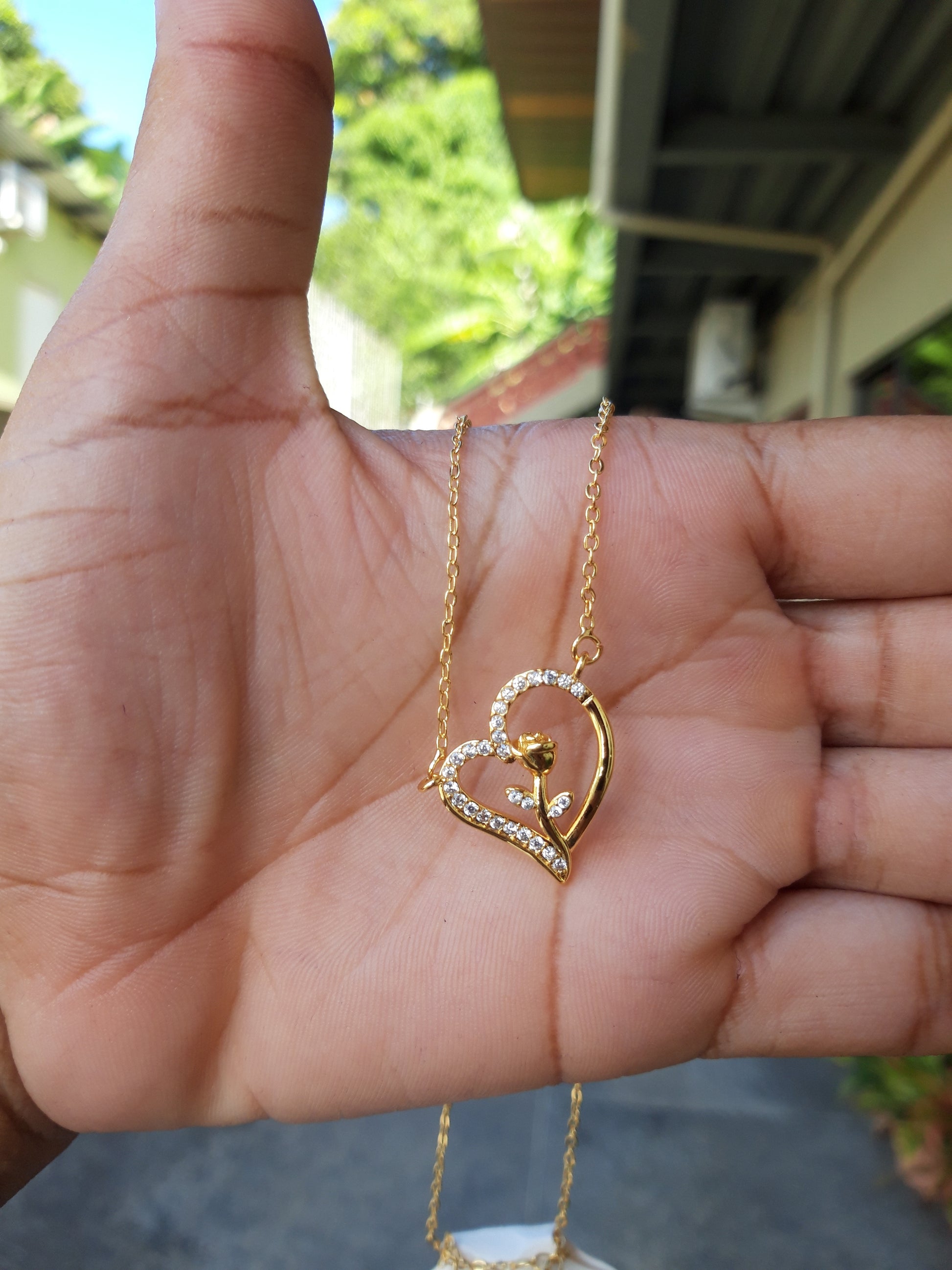 Rose in heart necklace